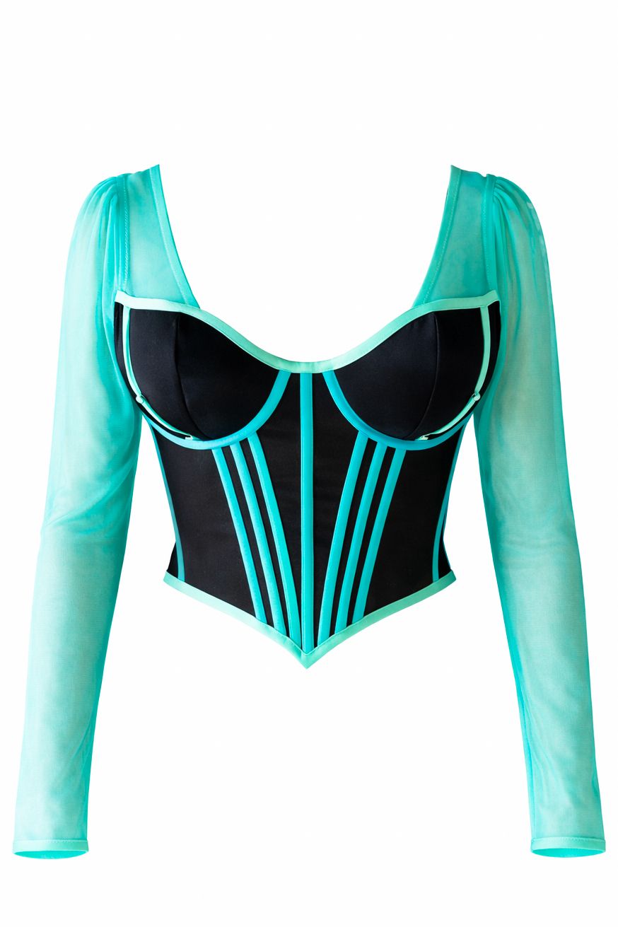 Bustier estructurado de silueta definida, diseñado para moldear y acompañar el cuerpo con precisión.