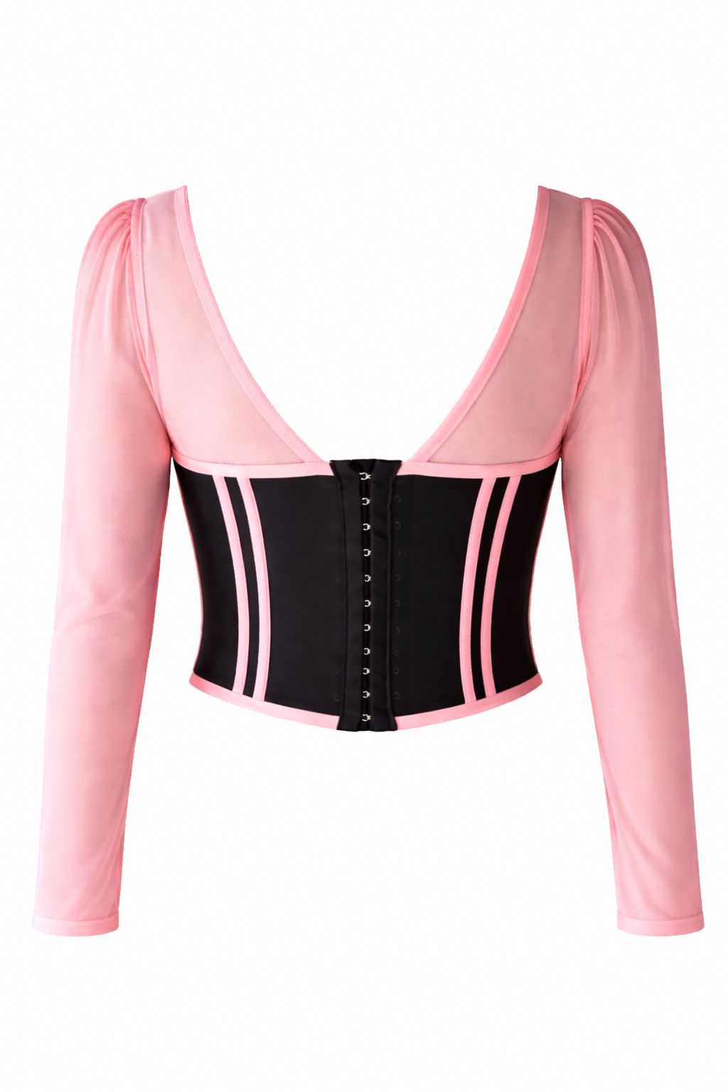Toda la prenda es elasticada, lo que permite un ajuste preciso, cómodo y envolvente, manteniendo la estética corsetera con una sensación contemporánea sobre la piel.