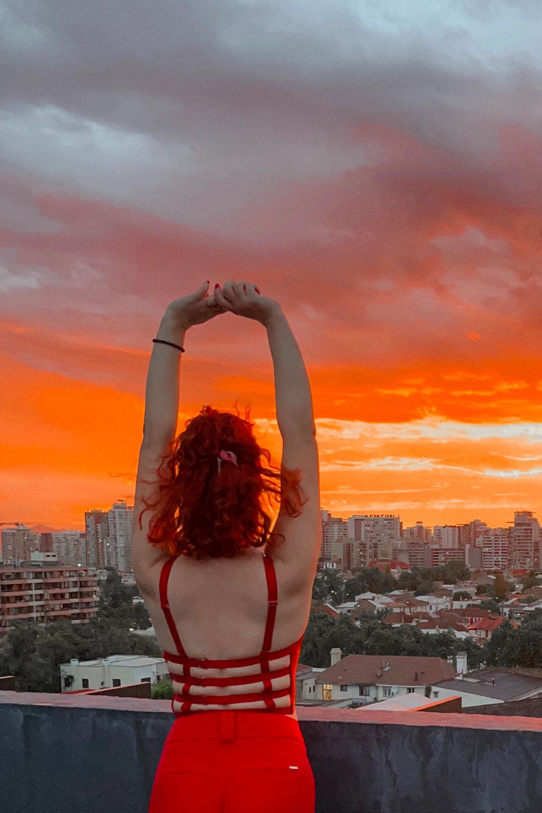 Los herrajes metálicos conectan cada punto de tensión, aportando un contraste frío que equilibra la intensidad del rojo. El diseño halter y las múltiples uniones refuerzan la sensación de estructura, fusionando estética bondage con una lectura contemporánea y sofisticada.