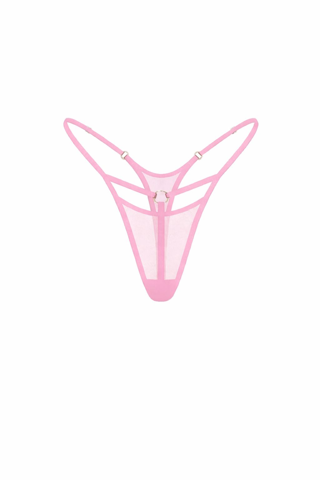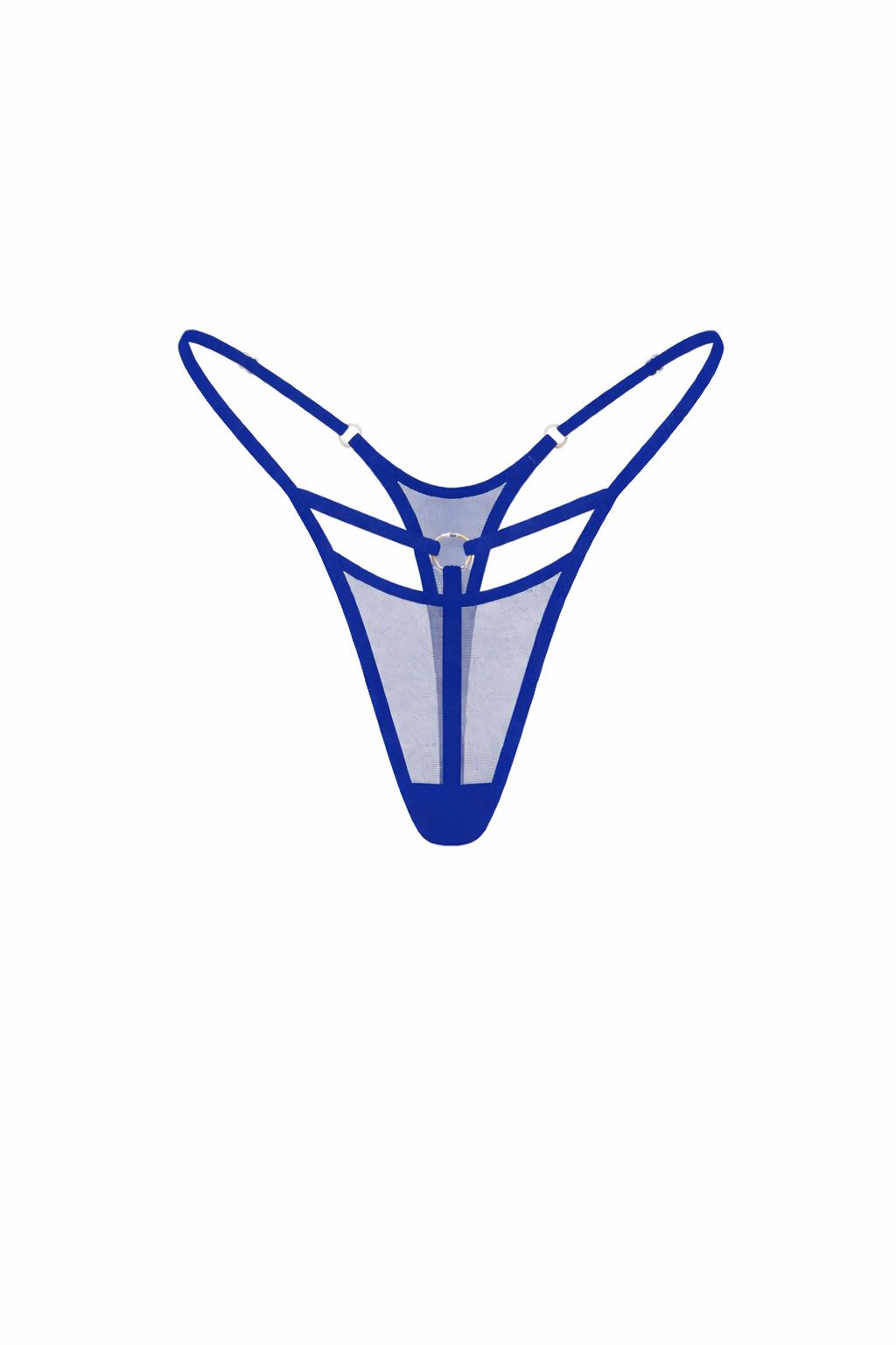 El colaless en tul translúcido se estructura a partir de líneas definidas que recorren el cuerpo, generando una arquitectura limpia y provocadora. Las tiras satinadas enmarcan y dirigen la mirada, creando un equilibrio entre lo gráfico y lo sensual.
