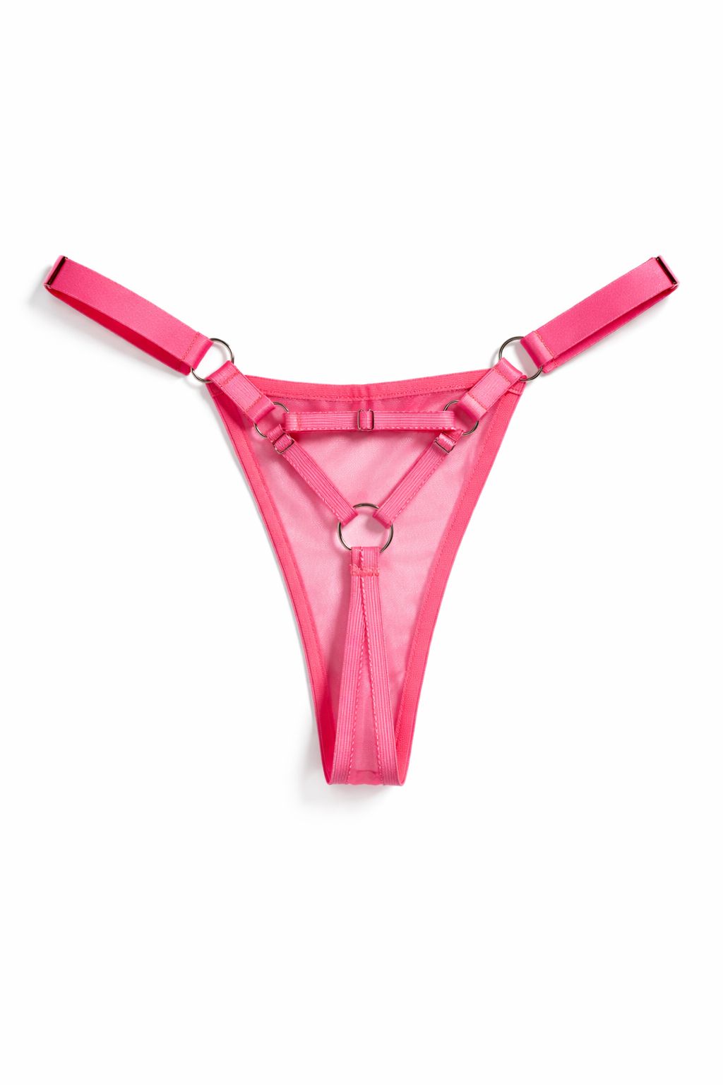 Diseñada para destacar desde cada ángulo, esta tanga combina ligereza visual con una estructura cuidadosamente pensada. Confeccionada en malla elasticada translúcida, se adapta al cuerpo con suavidad mientras mantiene una estética limpia y sofisticada.