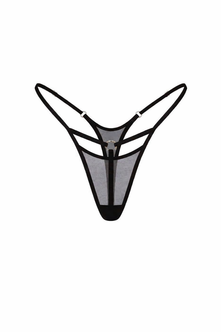El colaless en tul translúcido se estructura a partir de líneas definidas que recorren el cuerpo, generando una arquitectura limpia y provocadora. Las tiras satinadas enmarcan y dirigen la mirada, creando un equilibrio entre lo gráfico y lo sensual.